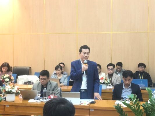 Tham dự Hội thảo, về phía đại biểu ngoài trường có ông Trần Minh Tuấn – Vụ trưởng Vụ Kinh tế số và Xã hội số, Bộ TT&TT; ông Nguyễn Văn Thành – Giám đốc Trung tâm Phát triển TMĐT, Cục TMĐT và Kinh tế số; ông Nguyễn Anh Dương – Trưởng Ban nghiên cứu tổng hợp, Viện nghiên cứu Quản lý Kinh tế Trung ương; cùng đại diện lãnh đạo Sở Khoa học Công nghệ Hà Nội, Tổng cục Thống kê, Cục Thống kê Hà Nội, đại diện các viện và trường đại học: Viện chiến lược phát triển, Bộ KHĐT, Viện Kinh tế Việt Nam, Trường ĐH Thương mại, Học viện Công nghệ Bưu chính Viễn thông… Về phía Trường Đại học Kinh tế Quốc dân có PGS.TS Nguyễn Thành Hiếu – Phó Hiệu trưởng; GS.TS Trần Thọ Đạt – Chủ tịch Hội đồng Khoa học & Đào tạo; GS.TS Tô Trung Thành – Trưởng phòng Quản lý Khoa học; cùng đại diện lãnh đạo các Phòng ban, Khoa, Viện, Trung tâm; các chuyên gia, các nhà khoa học trong và ngoài trường.
