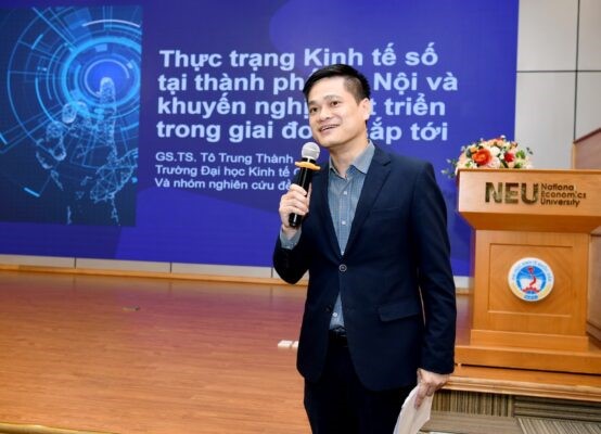 GS.TS Tô Trung Thành – Trưởng phòng QLKH, Đại học Kinh tế Quốc dân trình bày tham luận: Thực trạng kinh tế số trên địa bàn Hà Nội và khuyến nghị phát triển kinh tế số trong giai đoạn tới