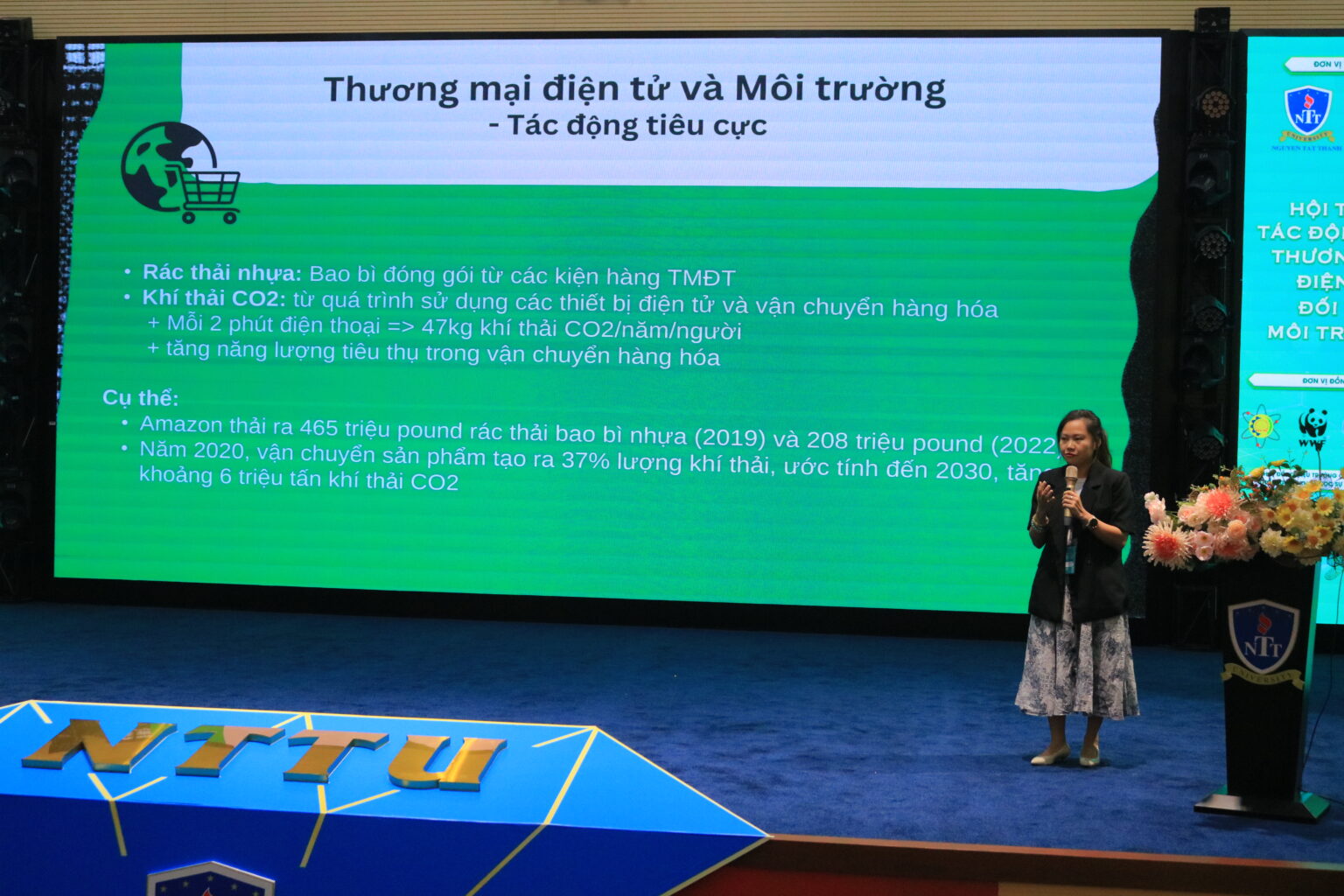 Ngày 12/9/2024, Hội thảo “Tác động của Thương mại điện tử đối với môi trường” lần đầu tiên được tổ chức tại Trường Đại học Nguyễn Tất Thành với sự tham dự của lãnh đạo các tỉnh thành phố khu vực phía Nam, các chuyên gia thuộc các viện nghiên cứu và giảng viên các trường Đại học thuộc Khối ngành Khoa học sự sống và môi trường, Tổ chức quốc tế về Bảo tồn thiên nhiên Việt Nam (WWF), Hiệp hội Thương mại điện tử Việt Nam (VECOM).
