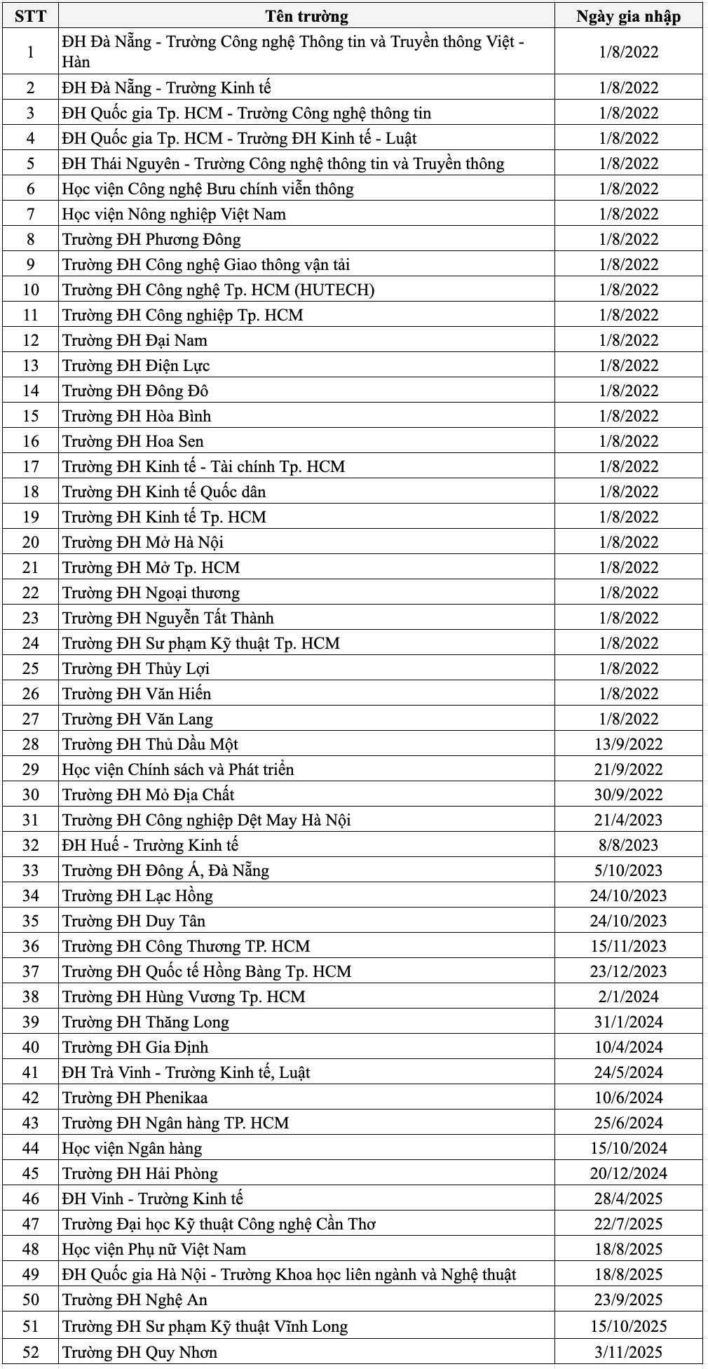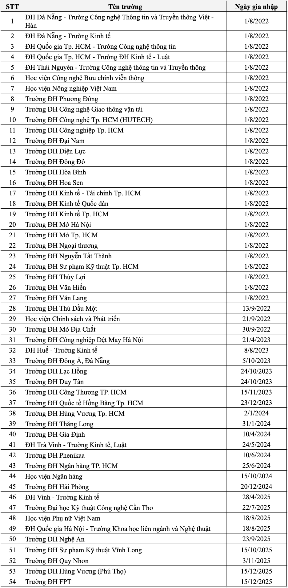 Danh sách thành viên