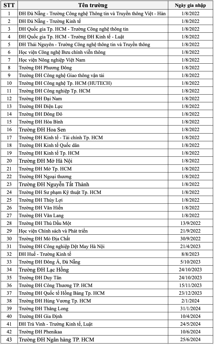 Mở rộng số lượng các trường đại học tham gia Mạng lưới. Số lượng thành viên tới hết năm 2023 là 39 trường. Năm 2024 sẽ mời thêm khoảng 5 trường đại học tham gia Mạng lưới, ưu tiên các trường tại miền Trung, Tây Nguyên, Tây Nam Bộ, các trường đã có ngành hay chuyên ngành TMĐT.