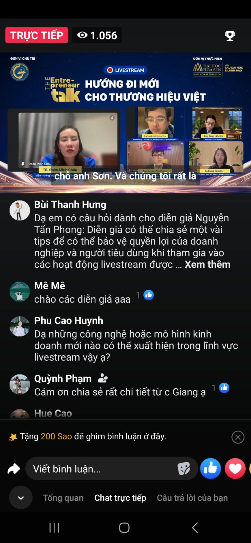 Talkshow được phát trực tiếp trên Fanpage Viện Sau Đại học & Lãnh đạo Đại học Hoa Sen. Tại buổi tọa đàm, các diễn giả đã bàn luận sôi nổi về xu hướng của Livestream trong thương mại điện tử và tầm quan trọng khi sử dụng Livestream để xây dựng thương hiệu.