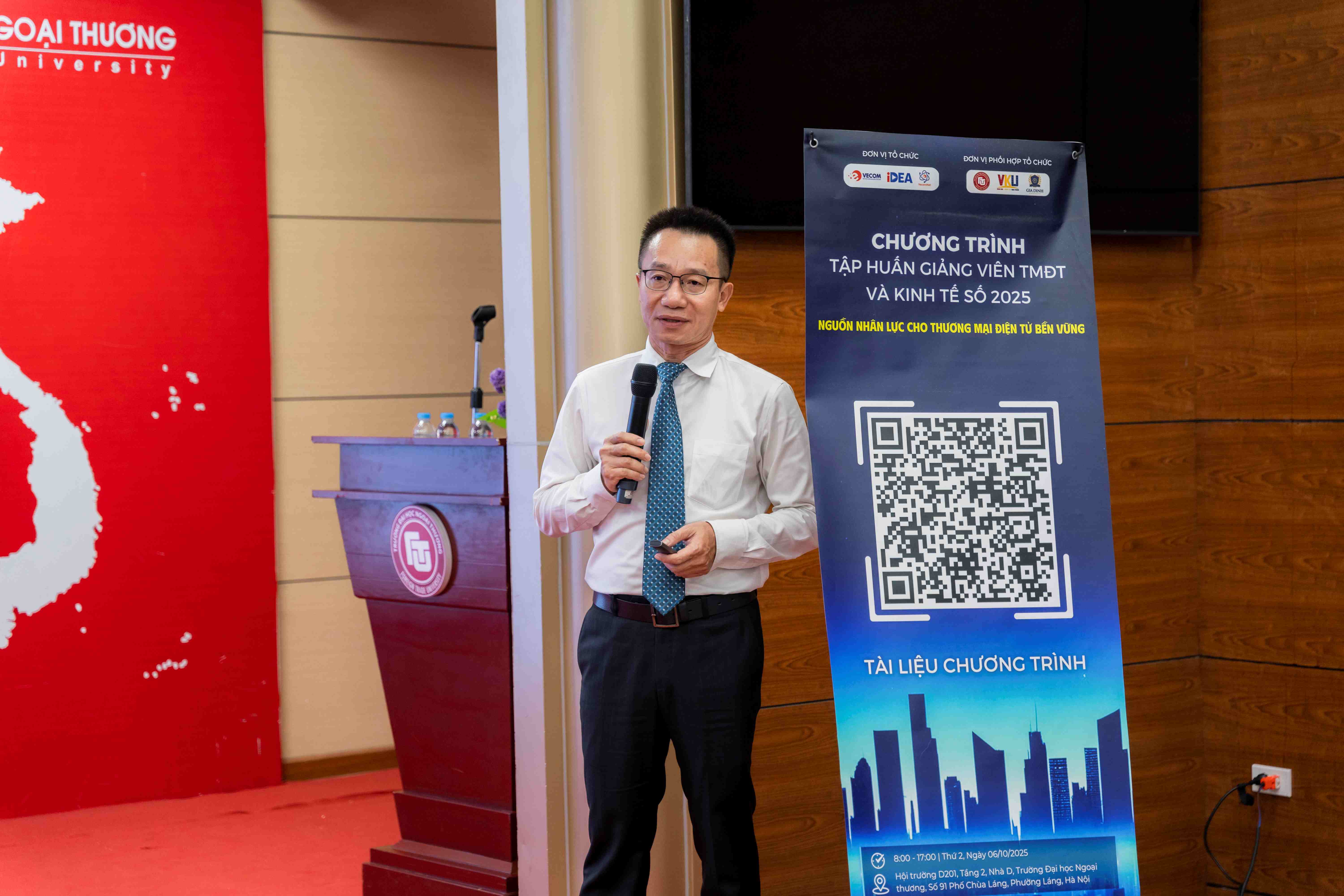 Phát biểu khai mạc, TS. Trần Thế Sơn nhấn mạnh vai trò đặc biệt quan trọng của việc phát triển đội ngũ giảng viên có chuyên môn sâu trong lĩnh vực thương mại điện tử và kinh tế số để đáp ứng yêu cầu của bối cảnh hiện đại. Ông khẳng định đây là yếu tố then chốt nhằm nâng cao chất lượng đào tạo và nghiên cứu khoa học, từ đó góp phần vào sự phát triển bền vững của nền kinh tế.
