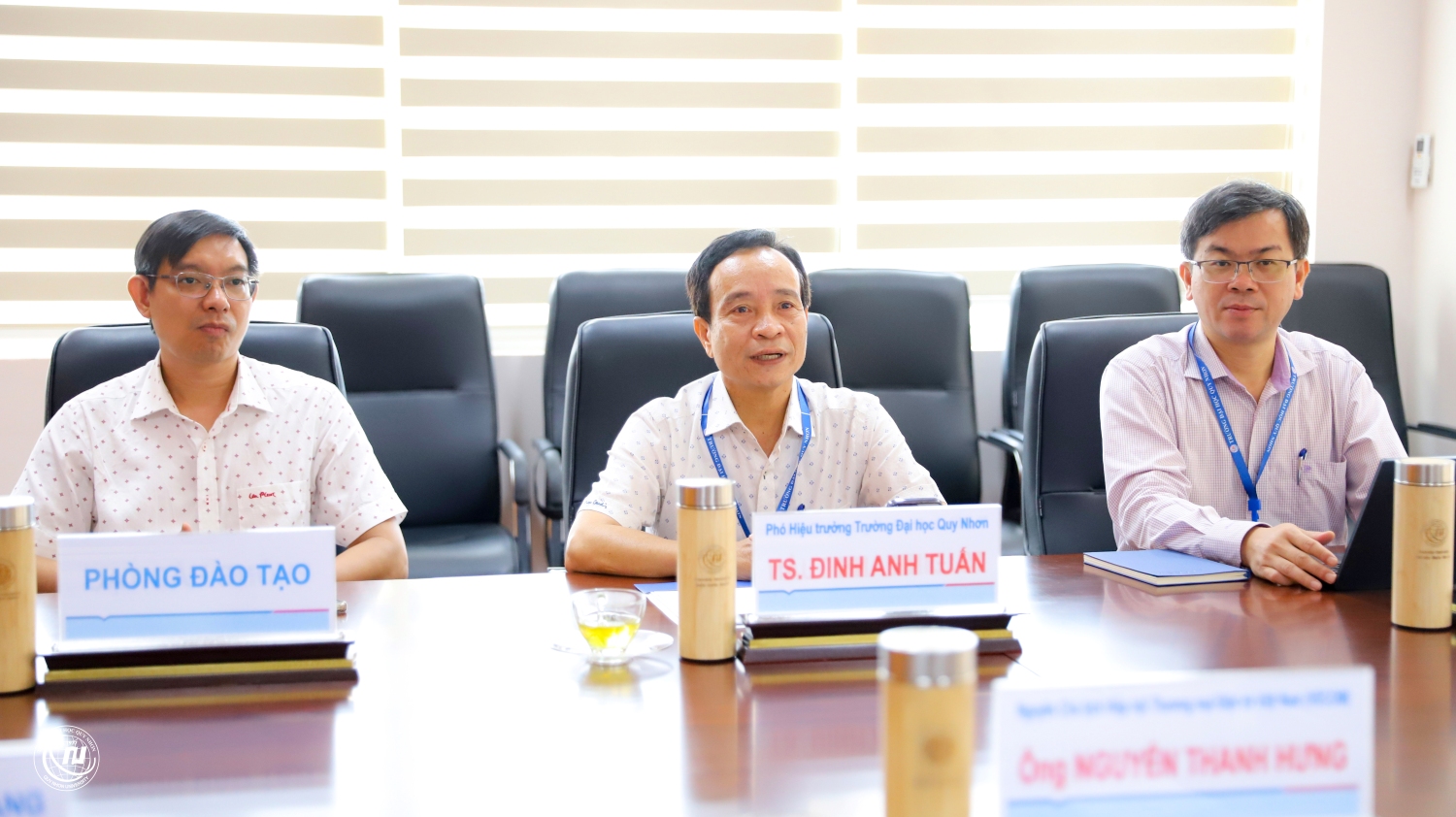 TS. Đinh Anh Tuấn - Phó Hiệu trưởng Trường Đại học Quy Nhơn (giữa), phát biểu tại buổi làm việc.