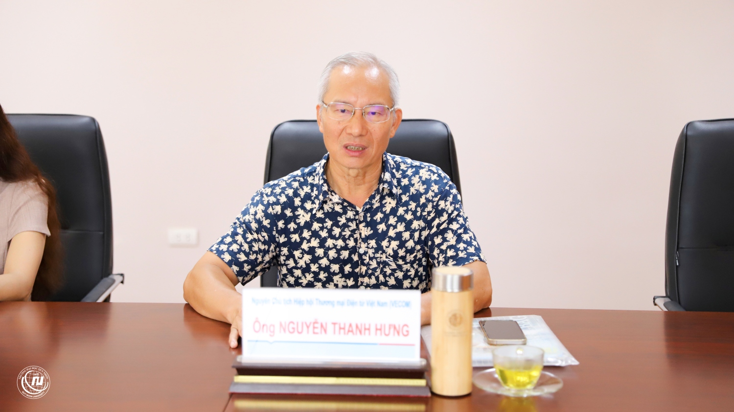 Ông Nguyễn Thanh Hưng - Nguyên Chủ tịch Hiệp hội Thương mại điện tử (VECOM) trình bày về hướng hợp tác với Nhà trường.