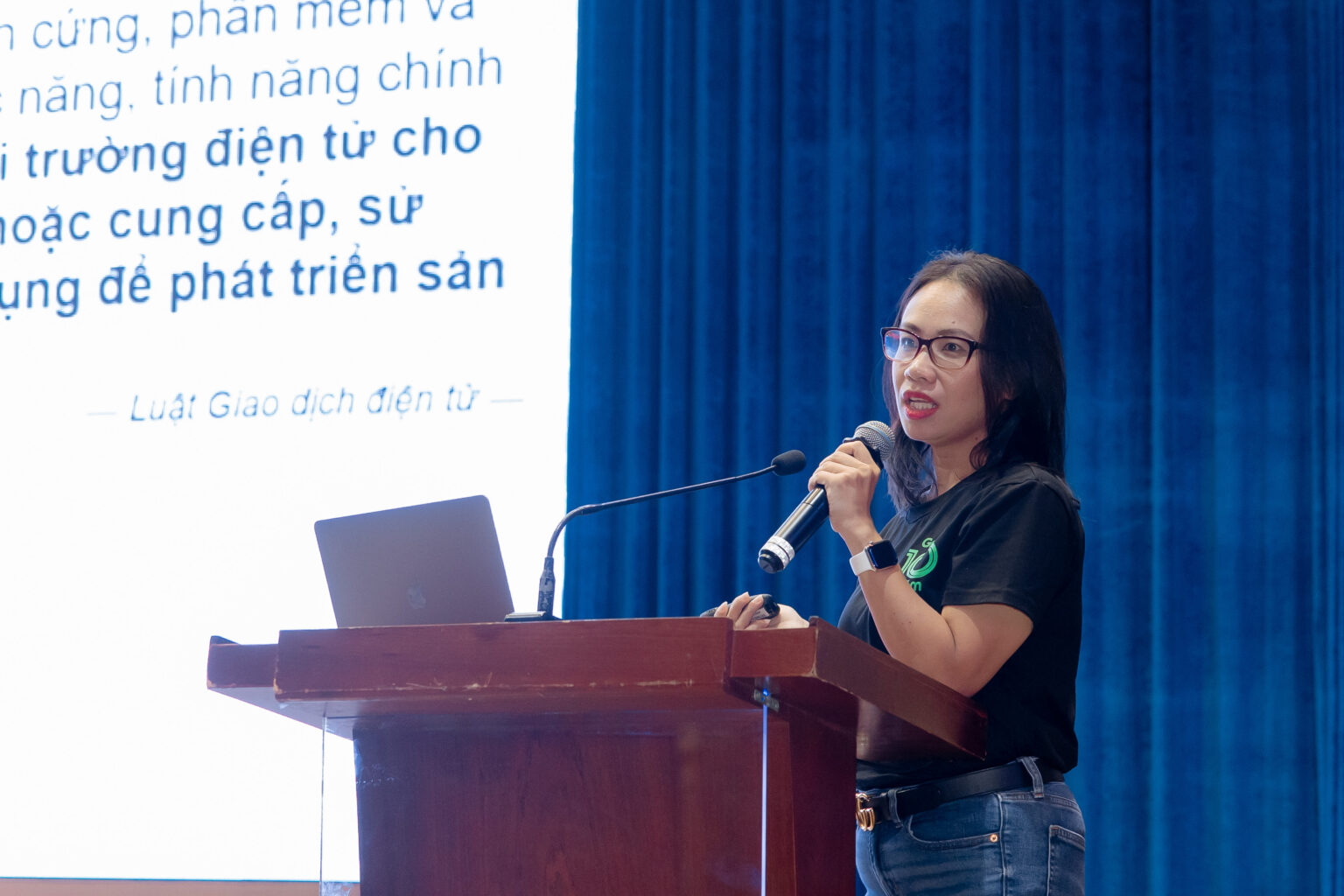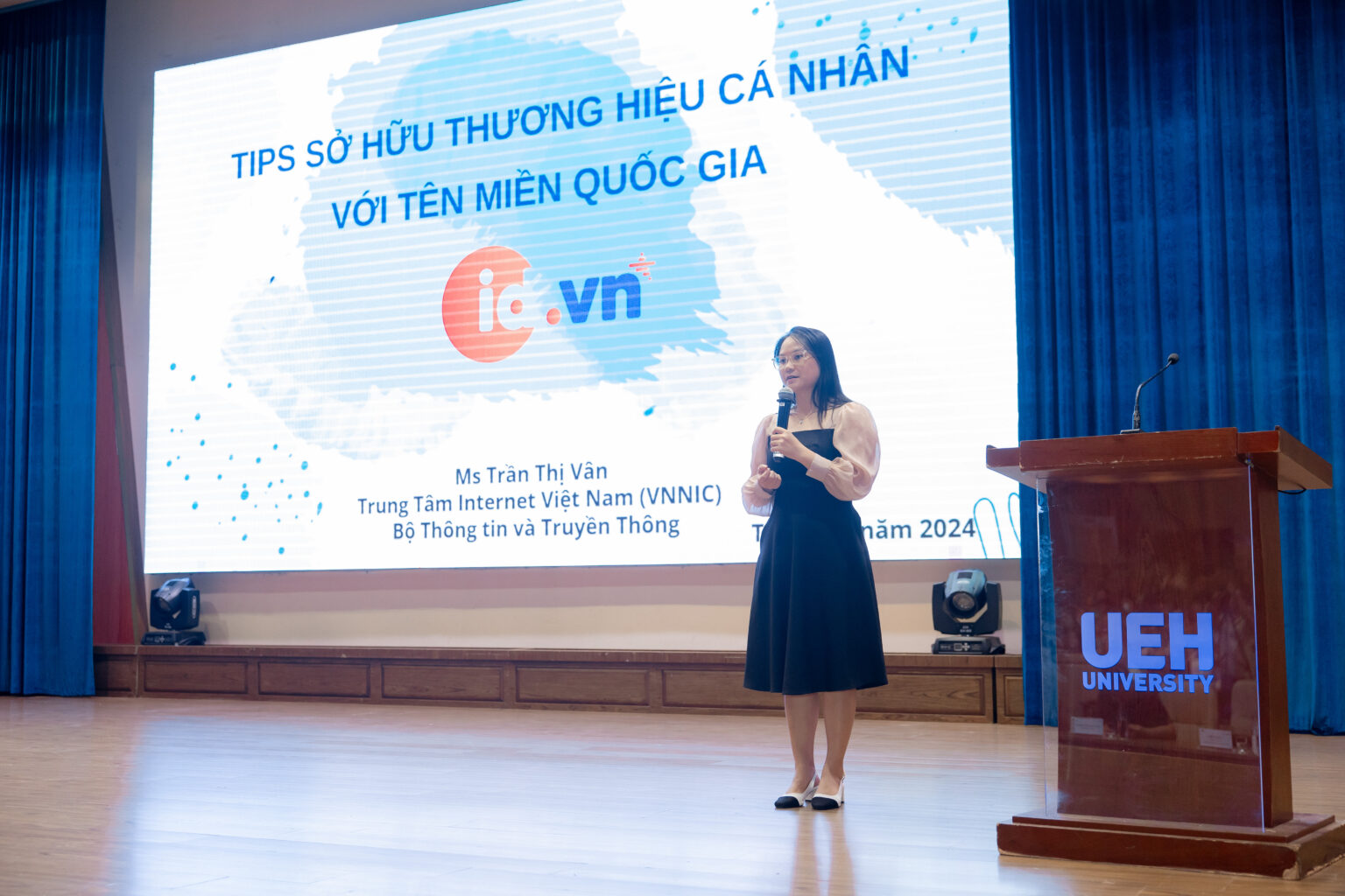 Mở đầu chương trình, Bà Trần Thị Vân – Chuyên viên Phòng Tổng hợp Dịch vụ, Trung tâm Internet Việt Nam Chi nhánh tại Thành phố Hồ Chí Minh – Bộ Thông tin và Truyền thông chia sẻ thương hiệu cá nhân không chỉ là một yếu tố quan trọng mà còn là một phần không thể thiếu trong hành trình phát triển sự nghiệp. Đặc biệt trong lĩnh vực thương mại điện tử, việc xây dựng một thương hiệu cá nhân ấn tượng sẽ giúp chúng ta nổi bật giữa đám đông và thu hút được sự chú ý của nhà tuyển dụng cũng như khách hàng.