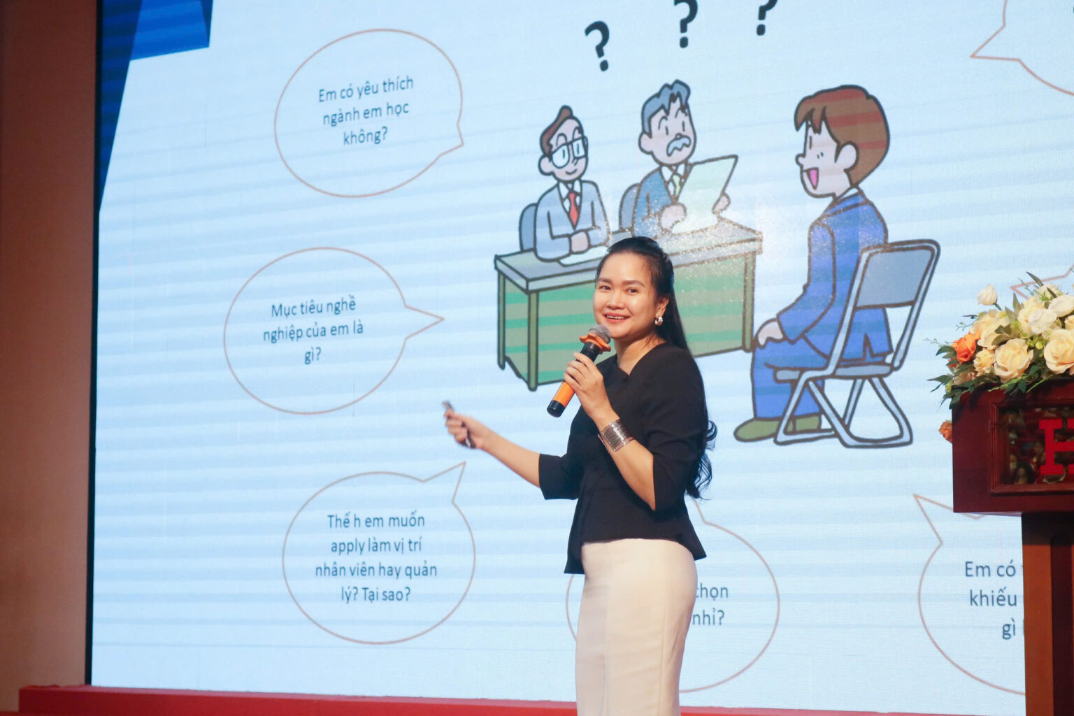 Tại Đại học Kinh tế TP. HCM, chương trình thu hút hơn 500 sinh viên tham gia, tạo nên một không khí sôi nổi và đầy hào hứng. Các bạn sinh viên không chỉ được lắng nghe những chia sẻ từ các diễn giả uy tín, mà còn có cơ hội tham gia vào các hoạt động tương tác thú vị, giúp họ mở rộng kiến thức và kết nối với nhau. Tiếp nối thành công tại Đại học Kinh tế TP. HCM, sự kiện diễn ra tại Trường Đại học quốc tế Hồng Bàng cũng thu hút hơn 700 sinh viên tham gia. Các hoạt động tại đây không chỉ phong phú mà còn mang tính chất thực tiễn cao, giúp sinh viên trang bị thêm kỹ năng và kiến thức cần thiết cho tương lai.