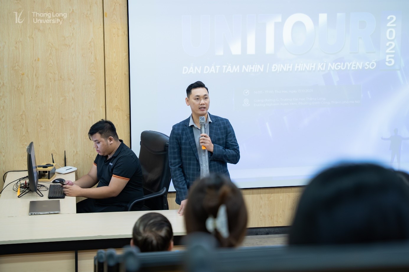 Chương trình UNITOUR 2025 🚀, một hoạt động trọng điểm trong khuôn khổ Cuộc thi Sinh viên Kinh doanh số 2025, đã chính thức diễn ra thành công tại Trường Đại học Thăng Long vào chiều ngày 13/10/2025. Sự kiện đã thu hút sự tham gia tích cực của khoảng 250 sinh viên, cùng với các chuyên gia và đại diện nhiều doanh nghiệp uy tín trong lĩnh vực thương mại điện tử và kinh tế số .