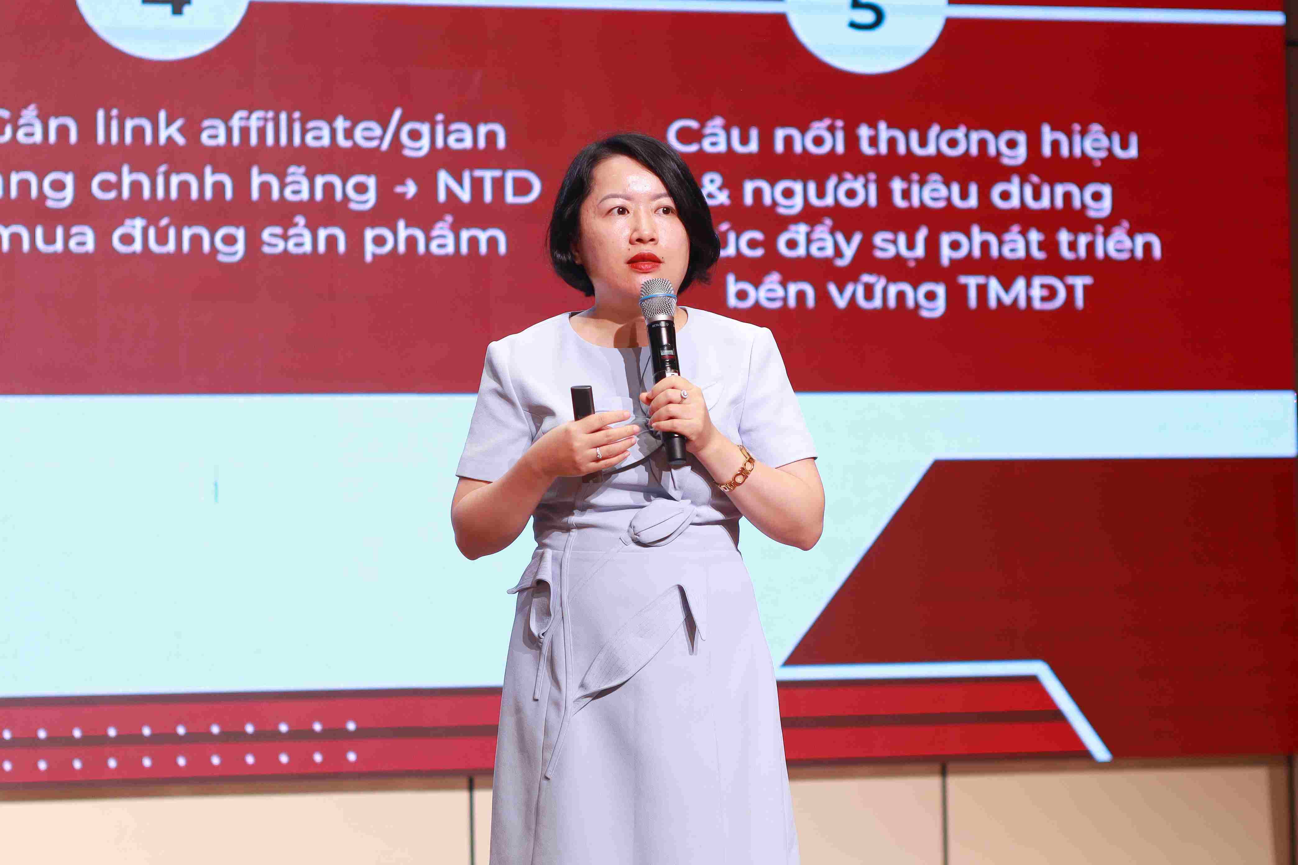 Trong phần chia sẻ với chủ đề “Từ xu hướng thương mại điện tử đến năng lực bền vững của thế hệ Digital Citizens”, chị Phạm Trần Hồng Diễm – CEO Dự án giáo dục TheCây, đã mang đến những góc nhìn sâu sắc về hành trình phát triển của thế hệ trẻ trong kỷ nguyên số. Theo chị Diễm, thương mại điện tử không chỉ là xu hướng kinh doanh, mà còn là môi trường giúp người trẻ rèn luyện tư duy số, năng lực sáng tạo và khả năng thích ứng với thay đổi. Trong bối cảnh công nghệ phát triển nhanh chóng, sinh viên cần không ngừng cập nhật kiến thức,