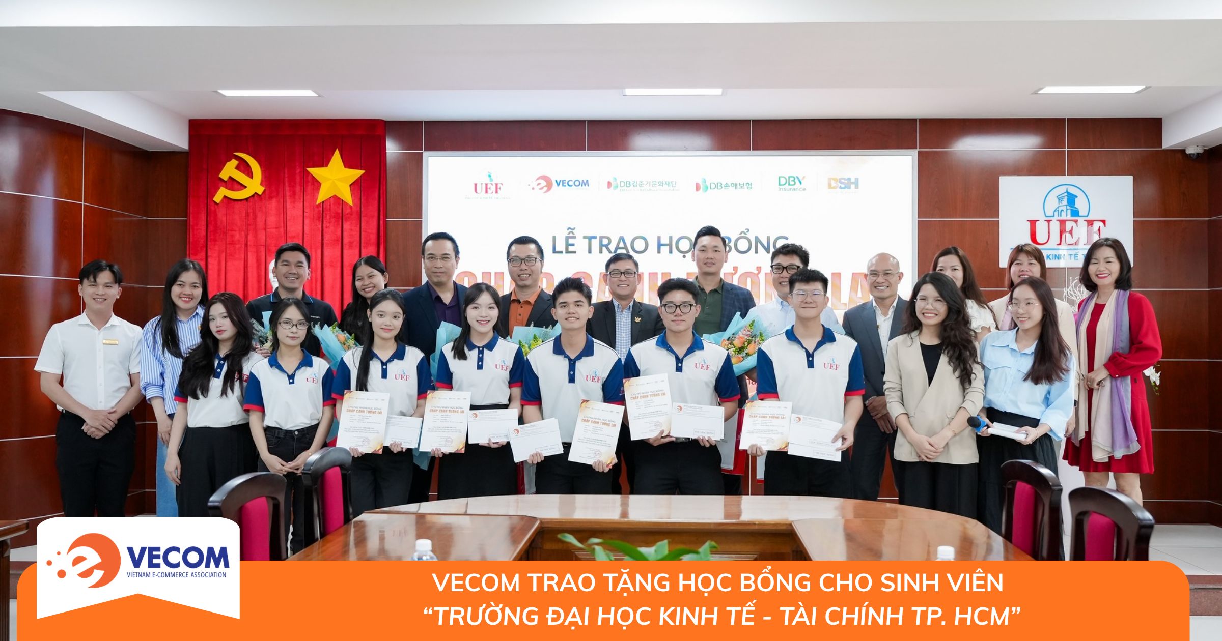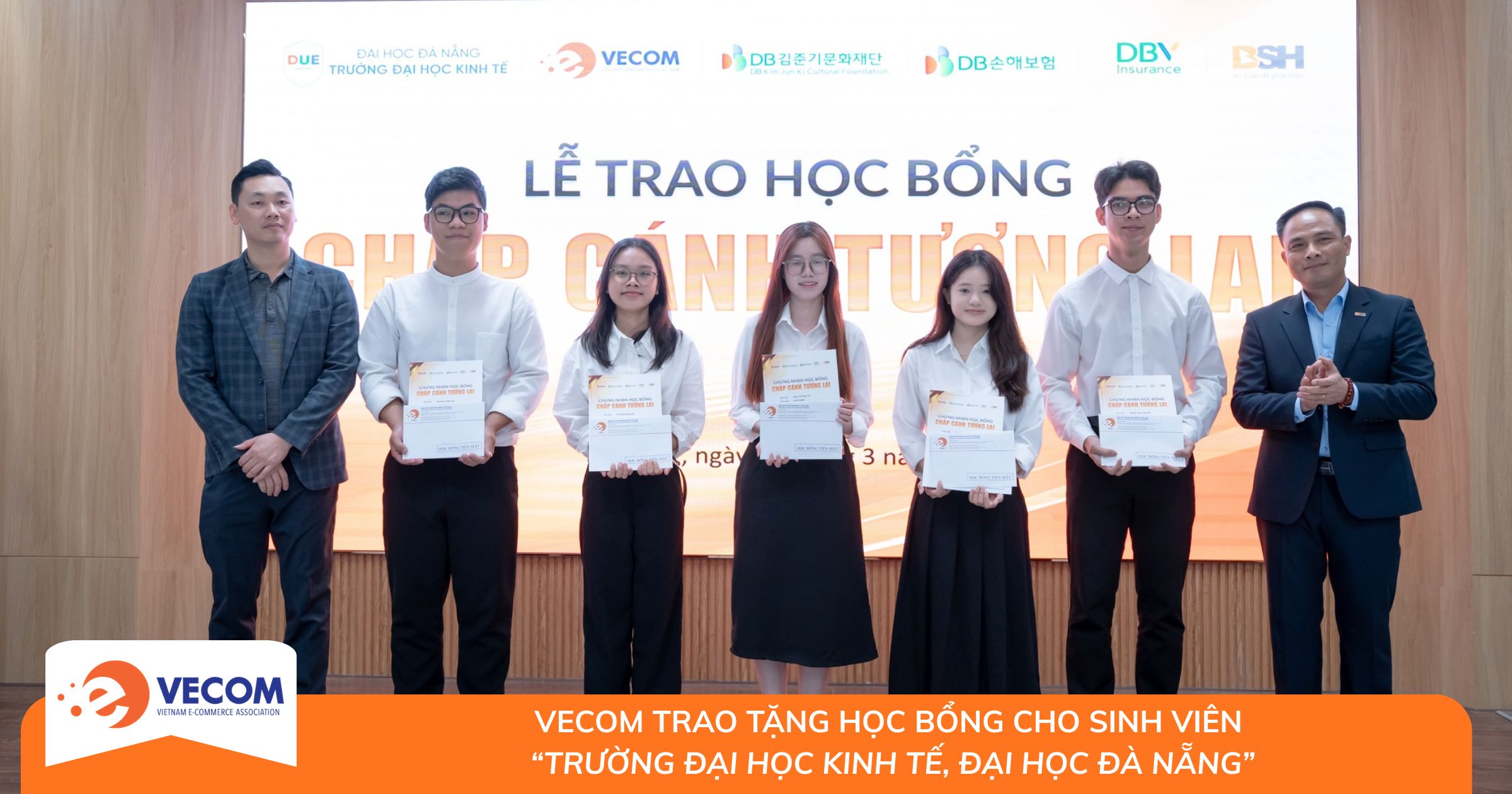 Trong tháng 3/2026, Hiệp hội Thương mại điện tử Việt Nam (VECOM) đã phối hợp cùng Quỹ Văn hóa DB Kim Jun Ki, Công ty Bảo hiểm DBI Hàn Quốc và Tổng Công ty Cổ phần Bảo hiểm Sài Gòn – Hà Nội (BSH) triển khai thành công chương trình trao học bổng tại 15 trường đại học thuộc Mạng lưới các cơ sở đào tạo thương mại điện tử (VecomNet) trên toàn quốc.