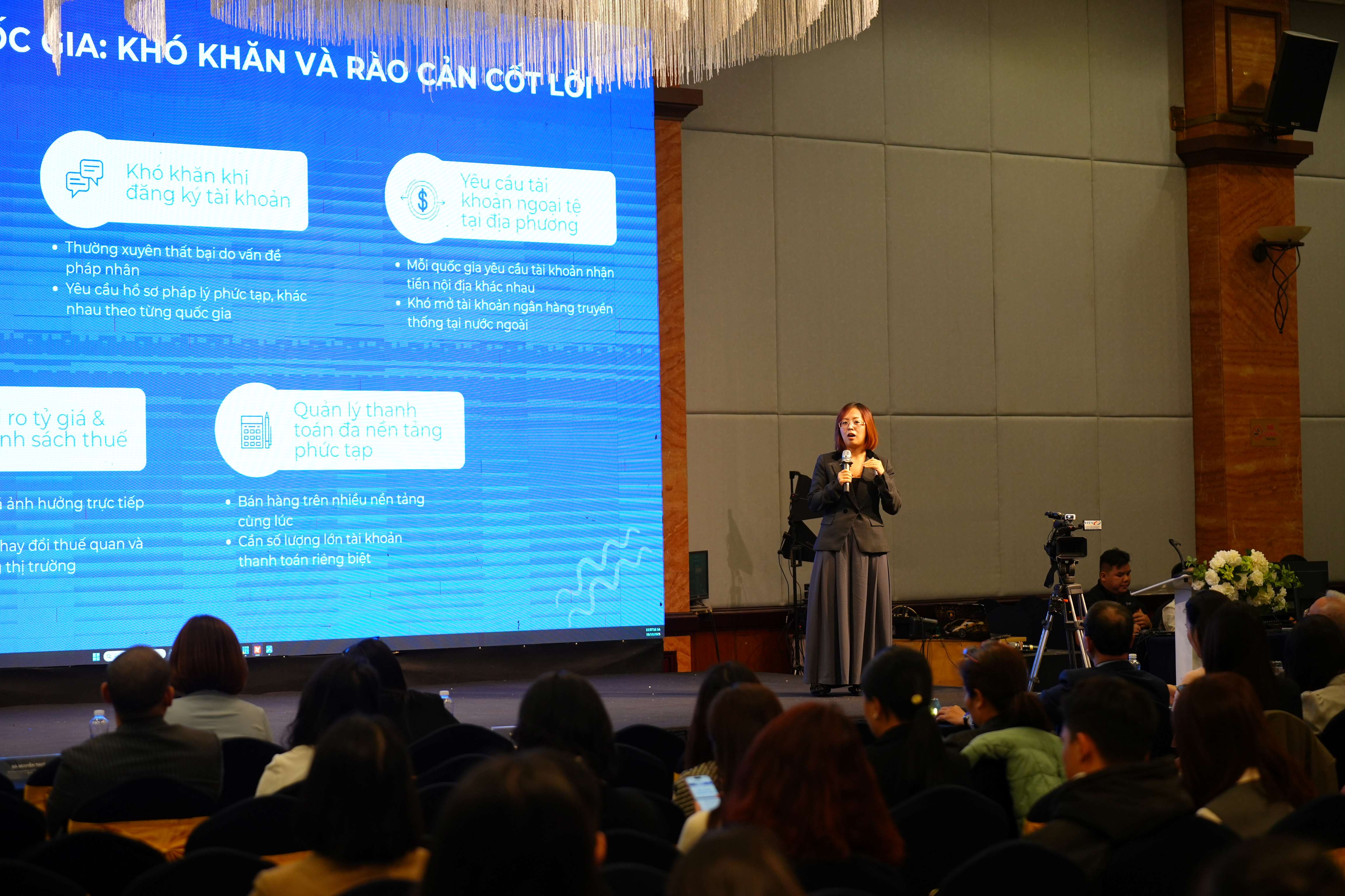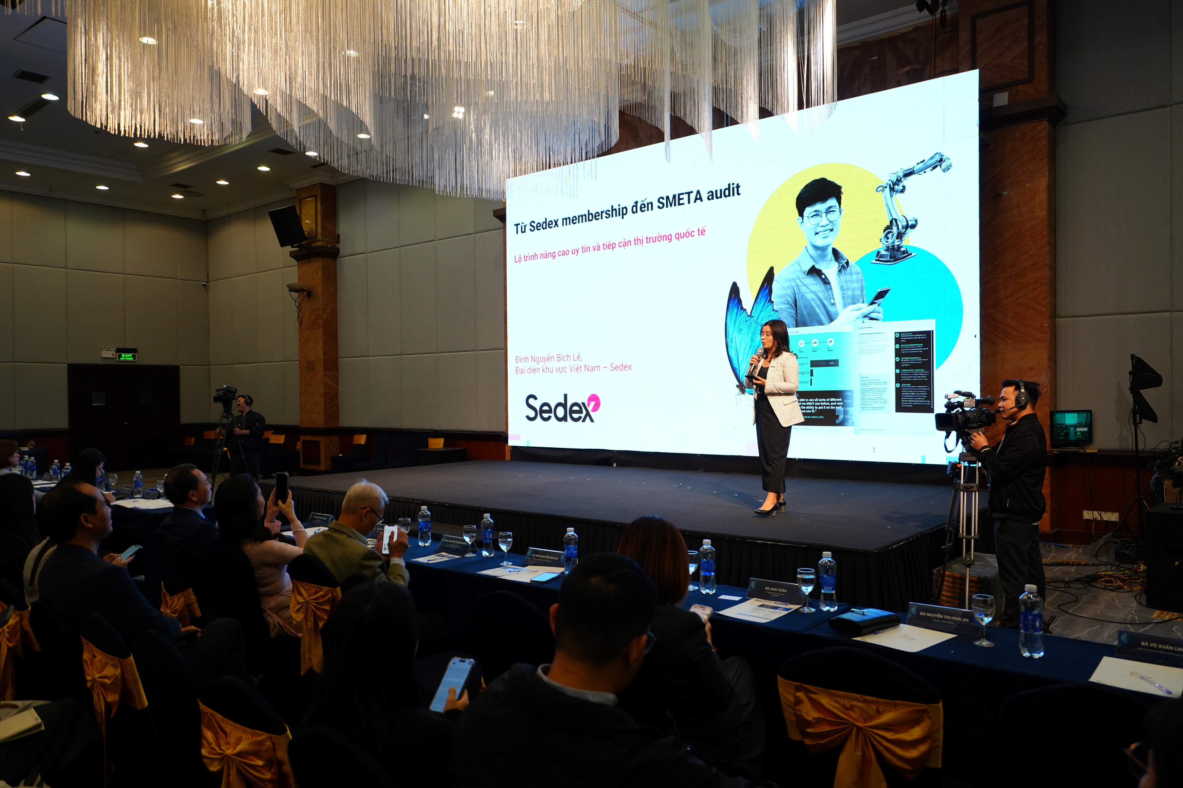 Các diễn giả đến từ OSB Group, Shopee, PingPong và Sedex đã chia sẻ kinh nghiệm triển khai thực tế liên quan đến nền tảng công nghệ, dữ liệu, thanh toán quốc tế, quản lý tài chính đa kênh và các tiêu chuẩn đạo đức trong chuỗi cung ứng toàn cầu.